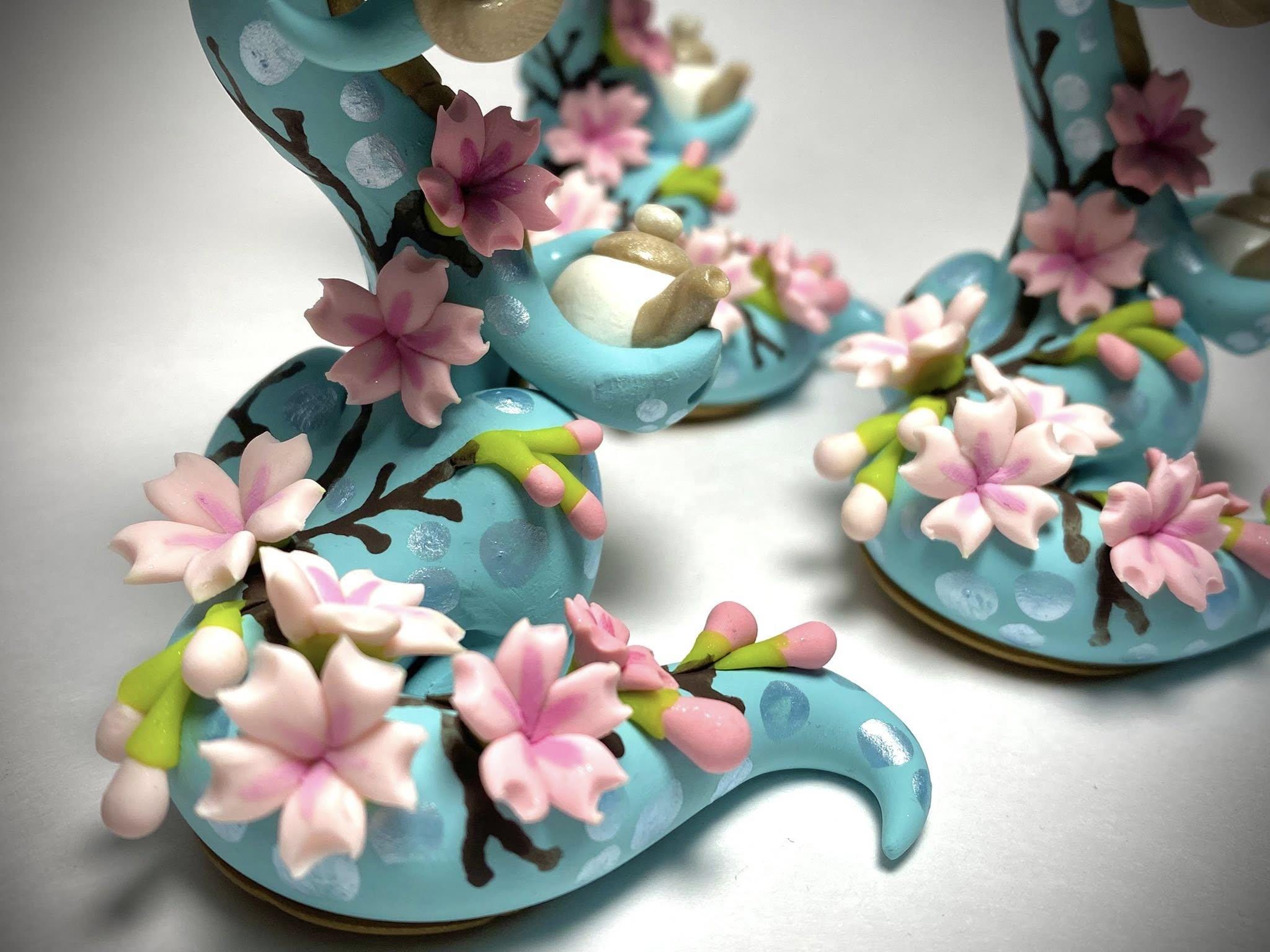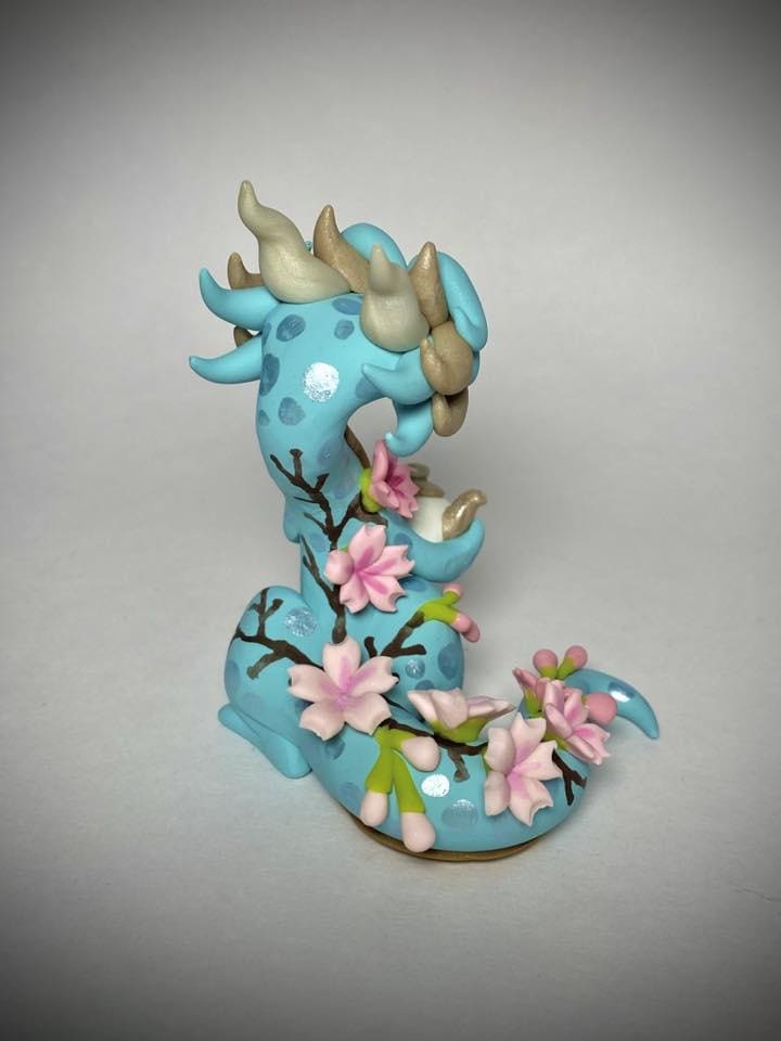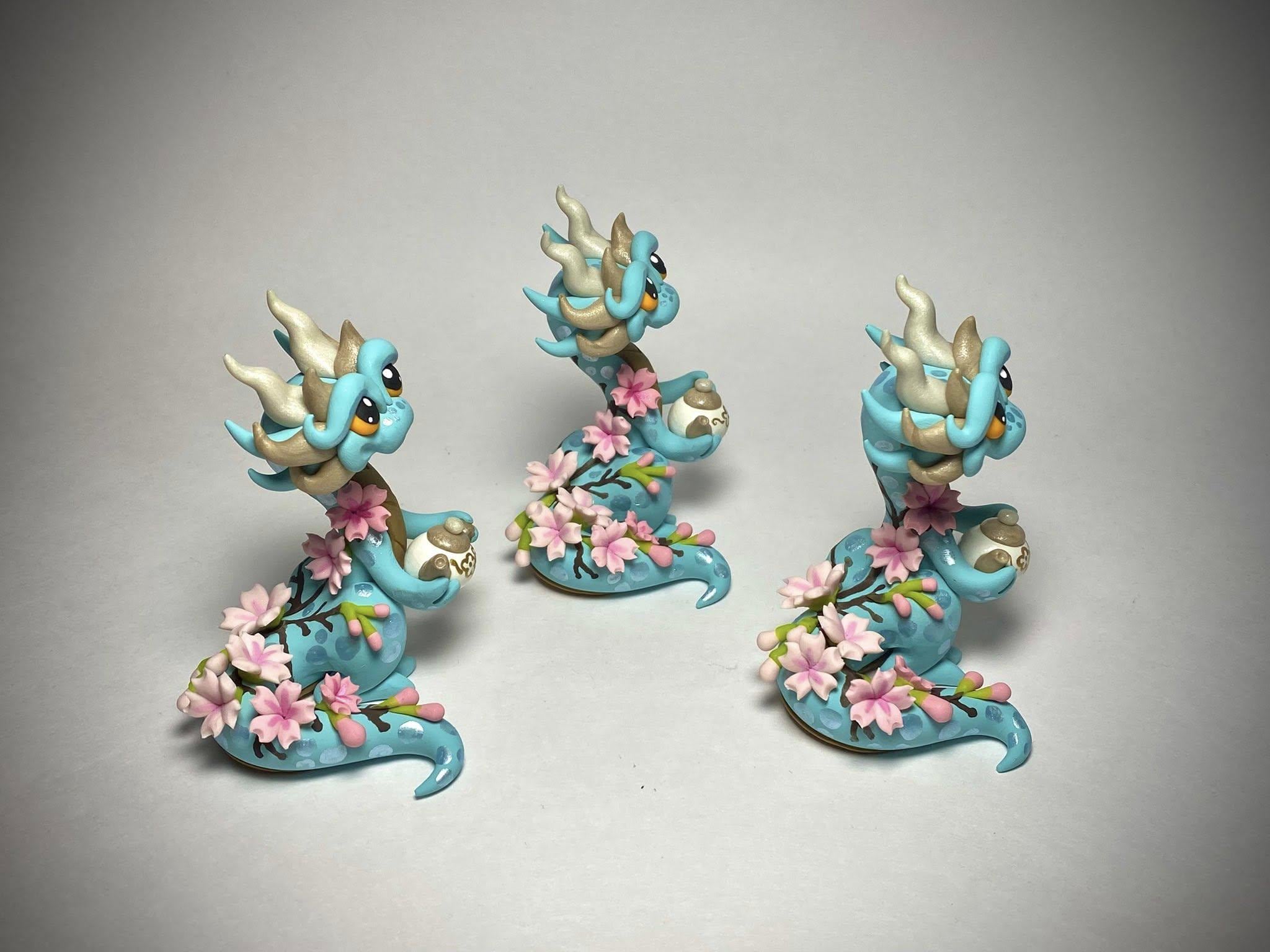 The Sakura Blossom Tea Dragon is a one-of-a-kind, hand-sculpted polymer clay figurine!